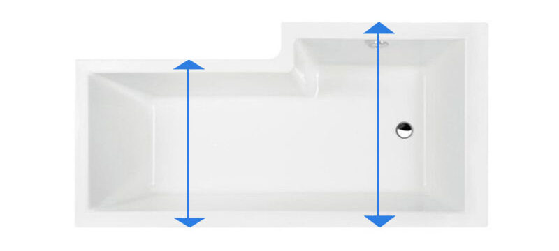 Note: If the bath is not your typical shape (e.g., a P-shaped bath or L-shaped bath), measure the width of both the widest part of the bath and the smaller part of the bath to have all measurements necessary for a better judgement.