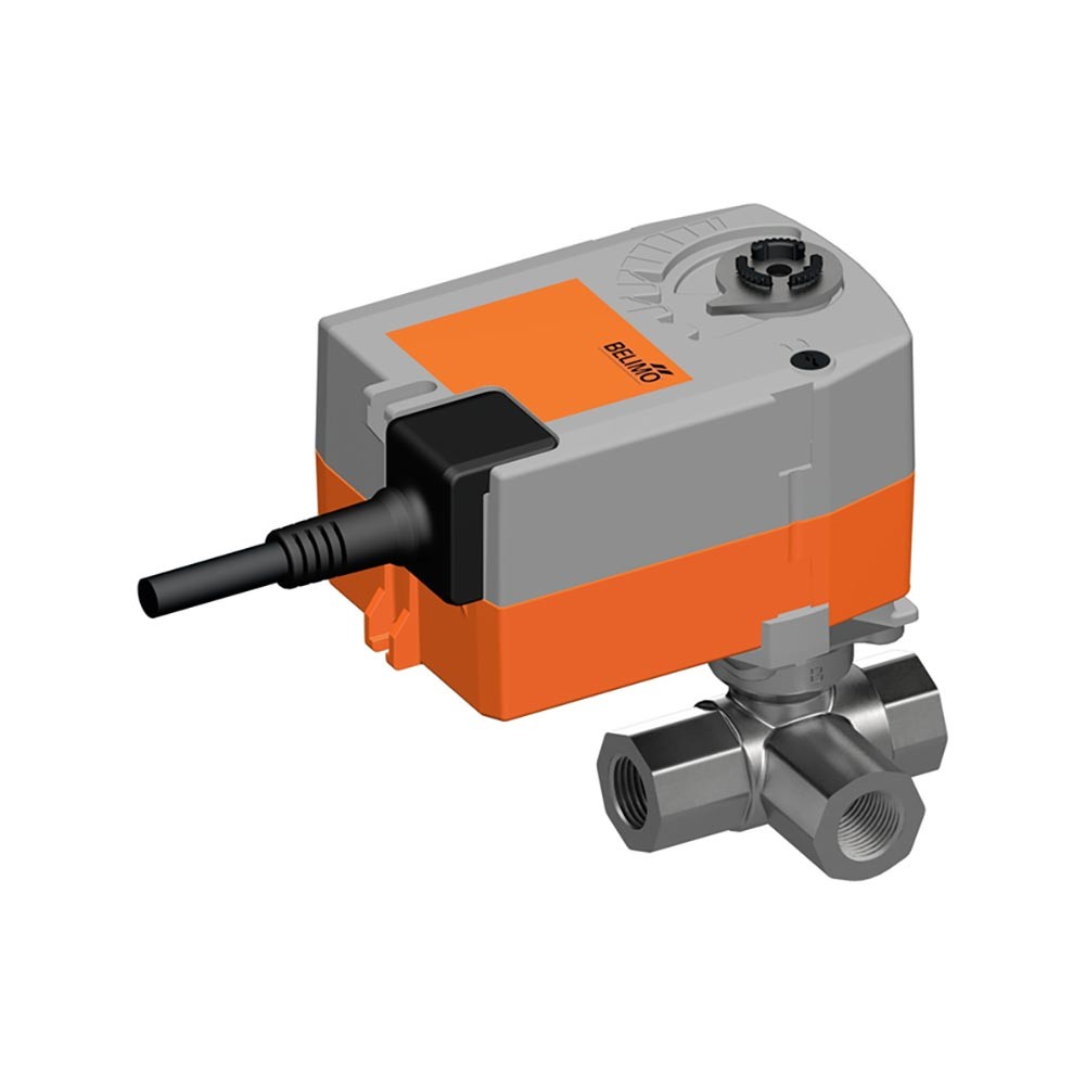 The 1/2 Inch Belimo 3 Port Valve with 240V Actuator (with Auxiliary Switch) is a compact, high-quality valve designed for accurate flow control in HVAC systems. With a three-port design suited for diverting or mixing applications, it ensures efficient regulation in both heating and cooling circuits. The 240V actuator provides powered open/close functionality, and the integrated auxiliary switch allows enhanced control through connection to automation or safety systems.