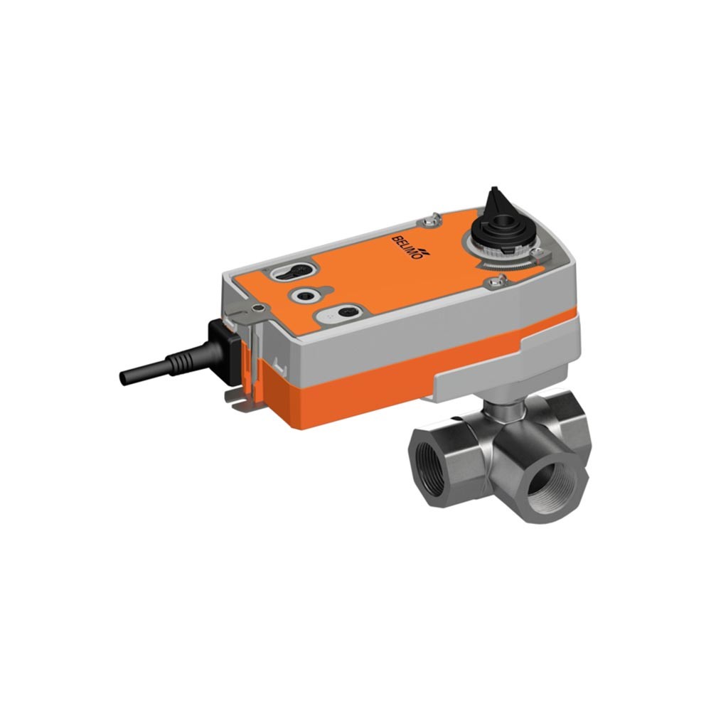 The 2 Inch Belimo 3 Port Valve with Dual 24-240V Actuator (with Auxiliary Switch) is a heavy-duty solution designed for high-capacity HVAC systems requiring precise flow control. Its robust three-port configuration supports both diverting and mixing functions, making it ideal for large-scale heating and cooling applications. The dual-voltage actuator (24-240V) provides flexible installation across a wide range of systems, while the integrated auxiliary switch enables seamless integration with building automation or safety systems.