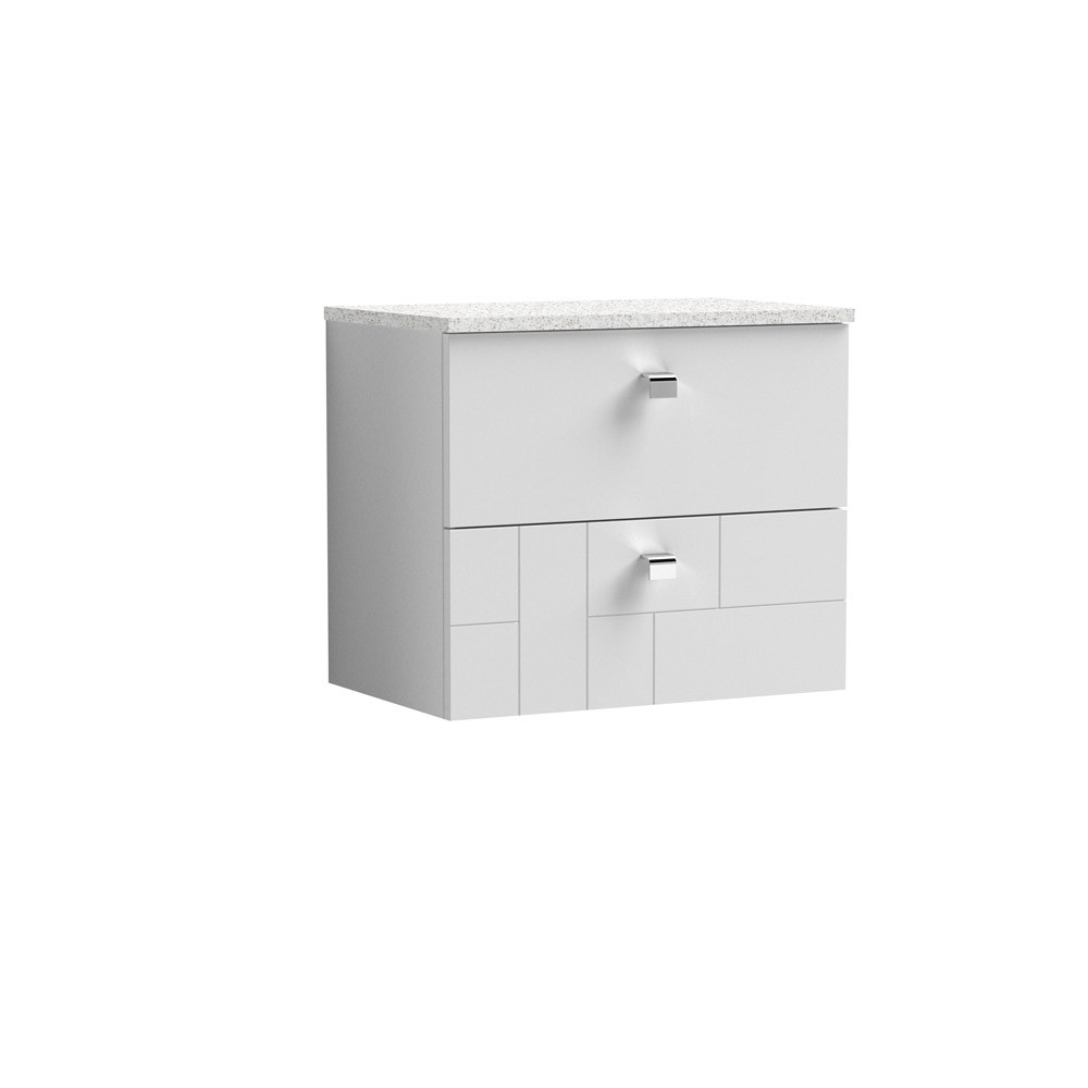DISCON - Nuie Blocks 600mm 2-Drawer Wall Hung Satin White Vanity Unit & Sparkling White Worktop