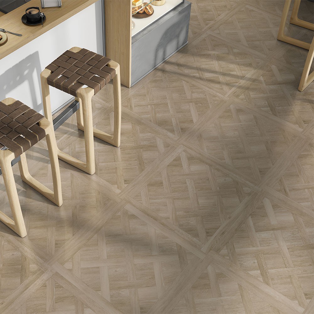 Inspired by the prestigious Parquet De Versailles pattern add a touch of historical charm to your home with the Bordeaux Parquet Oak Wood Effect Porcelain Floor Tile. This elegant flooring design features an intricate and symmetrical arrangement of interwoven wooden panels tha... Read More
