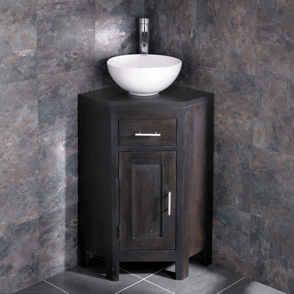 Features & Benefits: DISCO - Cloakroom Wenge Corner Oak Vanity Unit & Ceramic Round Basin