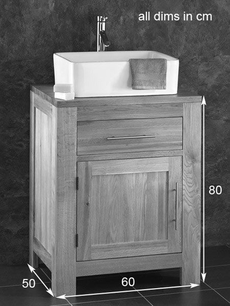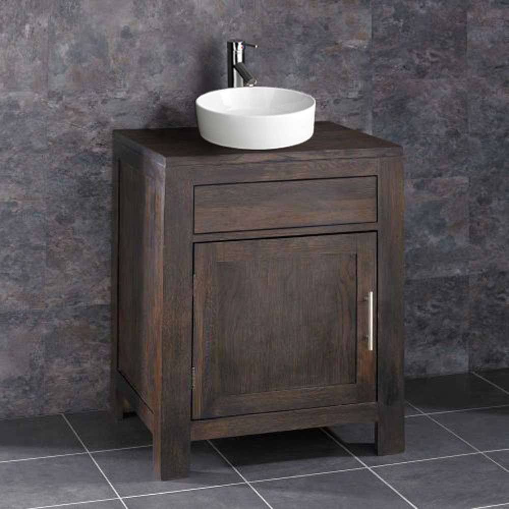 DISCON - 600mm Dark Oak Vanity Cabinet & Ceramic Round Basin
