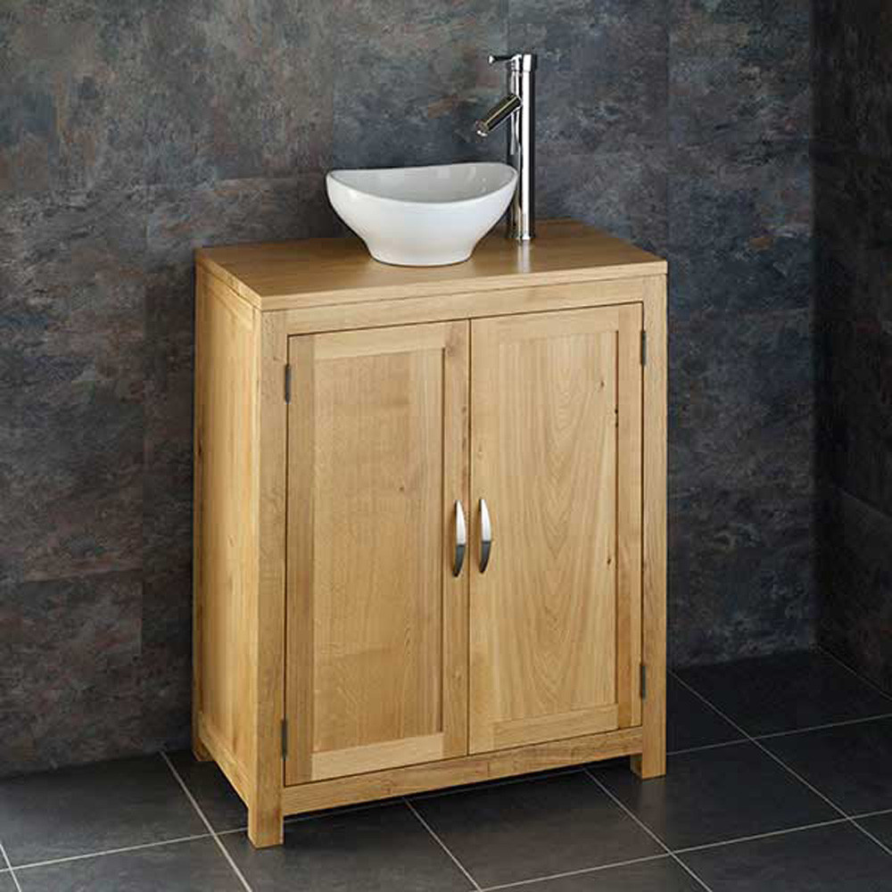 • 1 x Alta Natural Oak Freestanding Bathroom Slimline Vanity Cabinet with Adjustable Shelf (Width 650mm x Height 800mm x Depth 340mm)