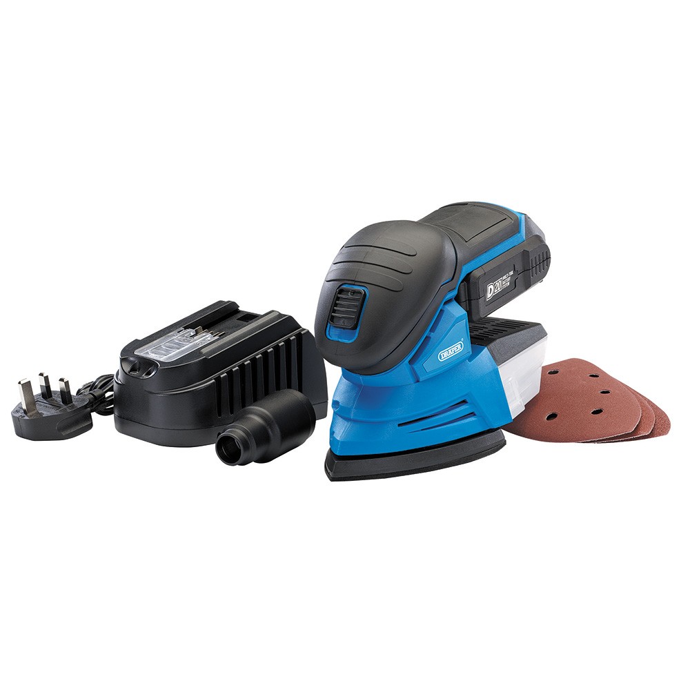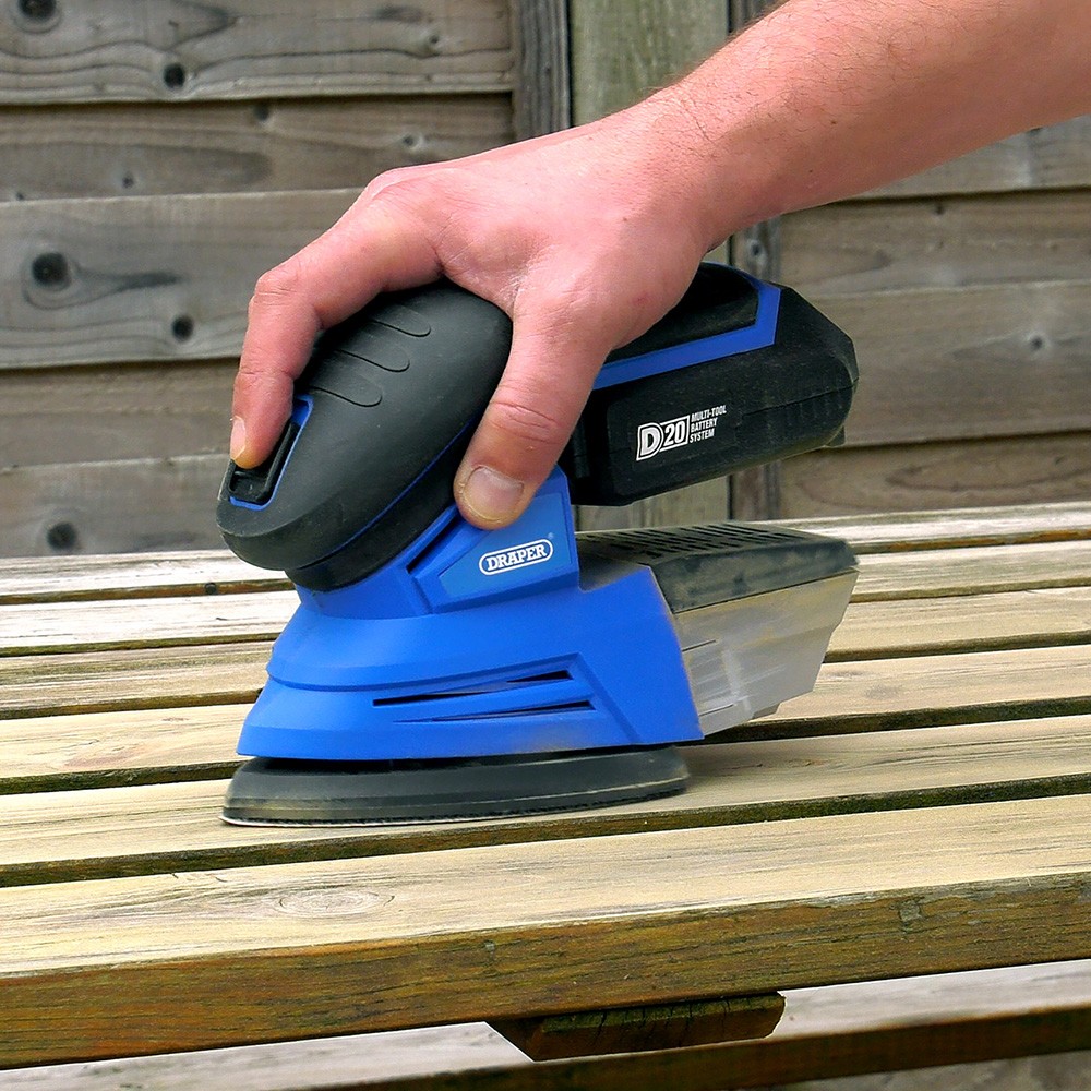 Draper D20 20V Tri-Base Detail Sander with 1 x 2.0Ah Battery & 1 x Charger