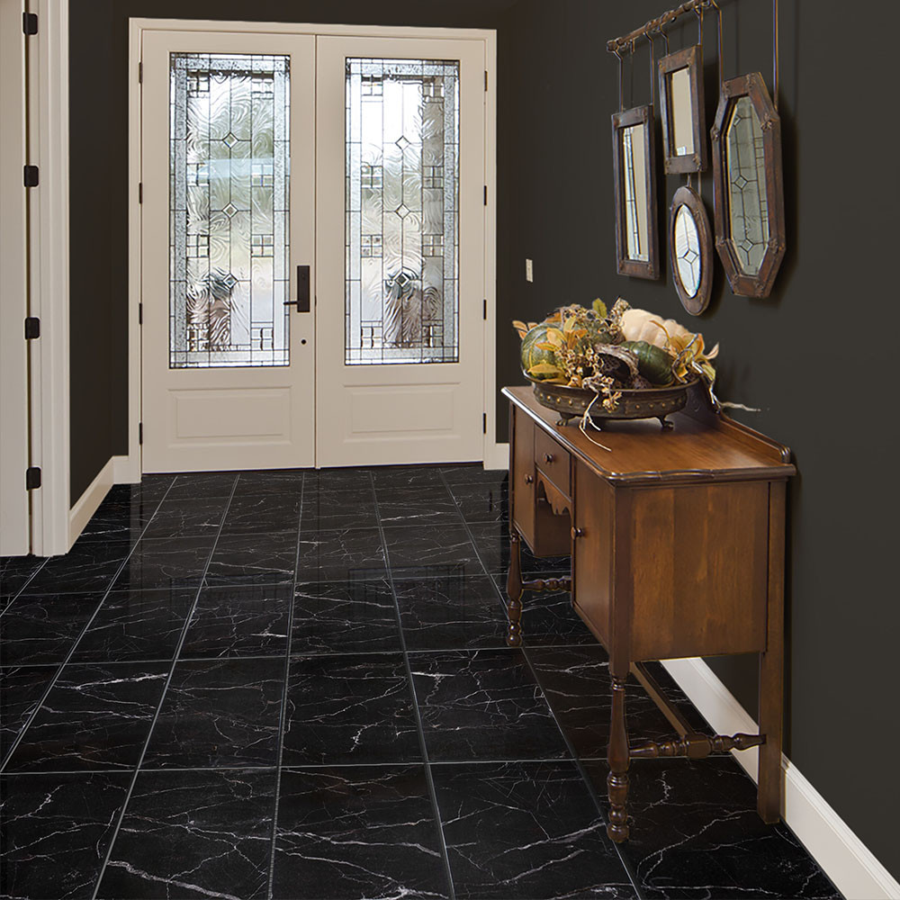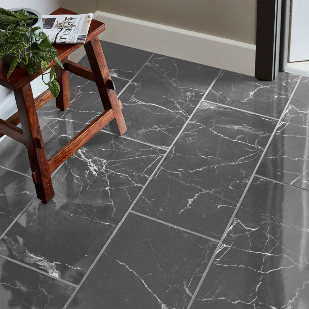 Transform your home with the Elegance Black Marble Effect Gloss Porcelain Large Floor & Wall Tiles and create a space that exudes sophistication and style.