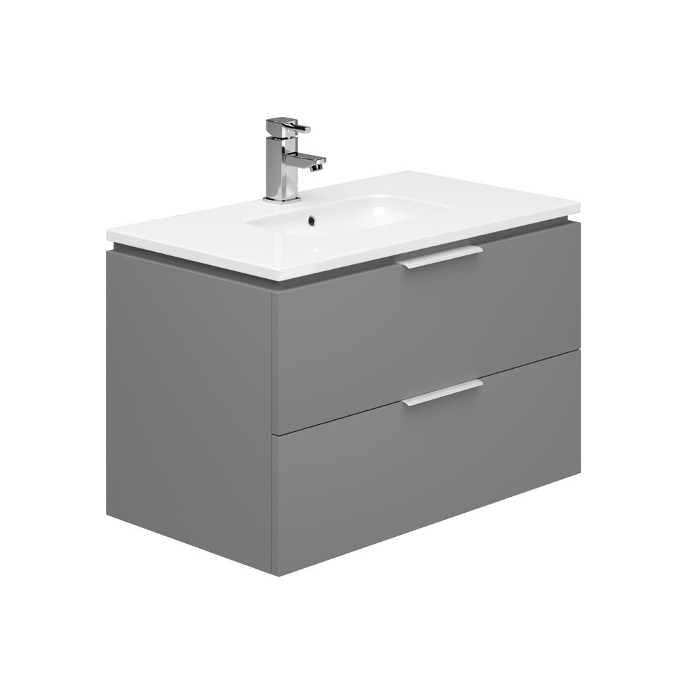 • A contemporary styled wall-hung basin and unit with a cool Onyx Grey finish