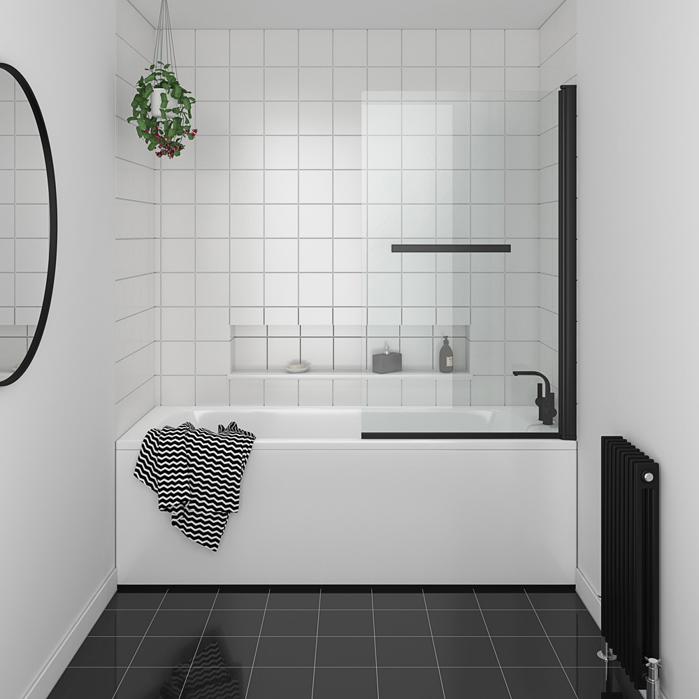 Features & Benefits: DISCON-Essential Designer 1400mm x 850mm Matt Black Bath Screen With Handle
