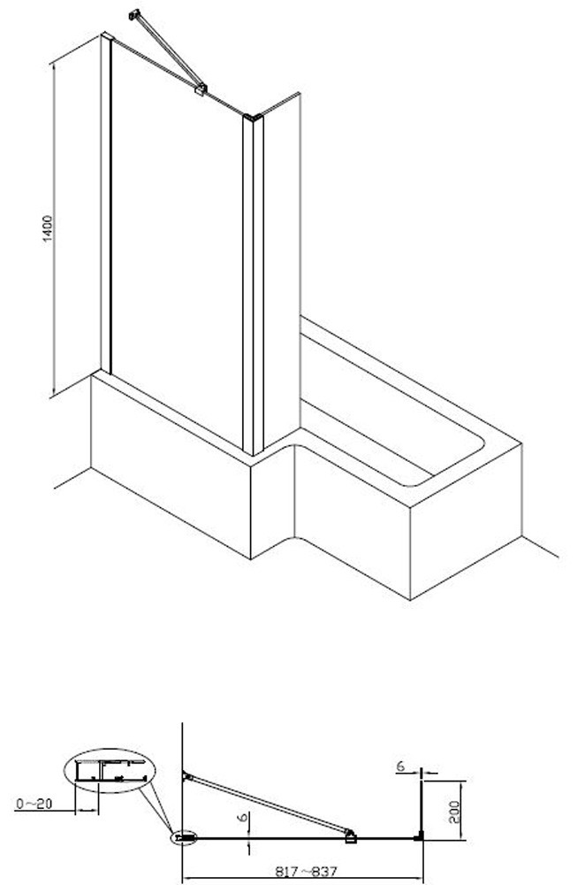 Features & Benefits: DISCO - Essential Designer 1400mm x 850mm x 200mm Matt Black L-Shaped Bath Screen