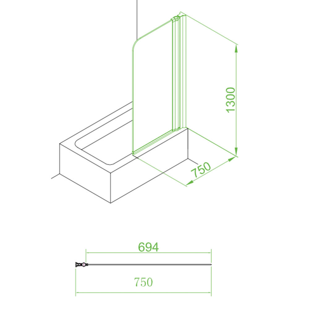 Features & Benefits: Essential Element 750mm x 1300mm Glass Curved Bath Screen