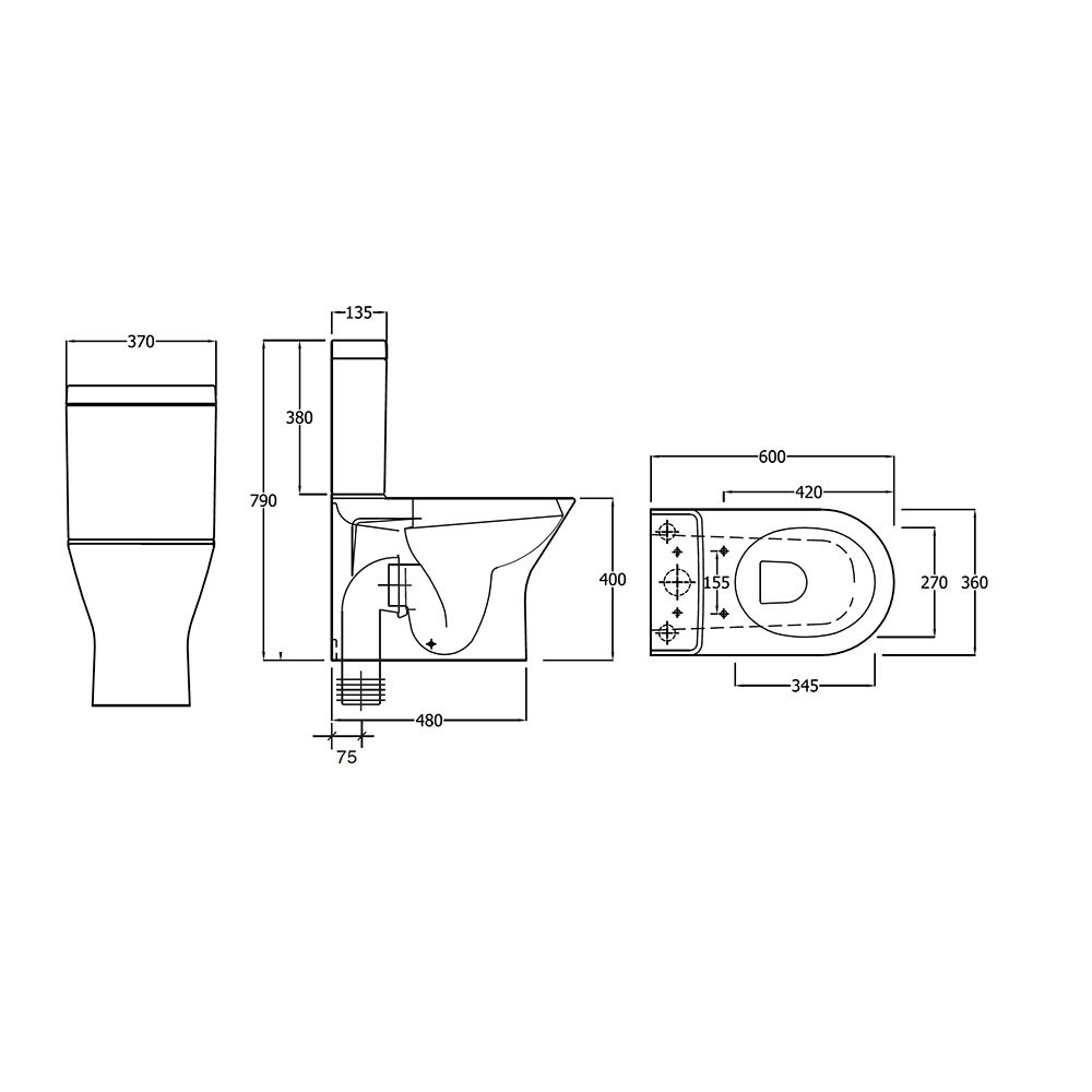 Made from Vitreous China, which is non-porous and easy to clean, this toilet pack set has an overall height of 790mm and projects 600mm into the bathroom. Supplied with a soft close seat as well as a push-button cistern making this set a versatile and popular choice whether it's for your en-suite, bathroom or cloakroom.