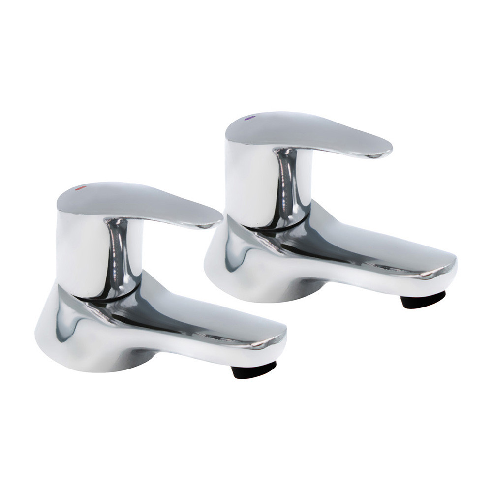 This modern pair of pillar-mounted basin taps is complete with sleek, glamorous curved handles to ensure a sophisticated design. The shiny chrome finish increases the feeling of luxury for any bathroom theme.