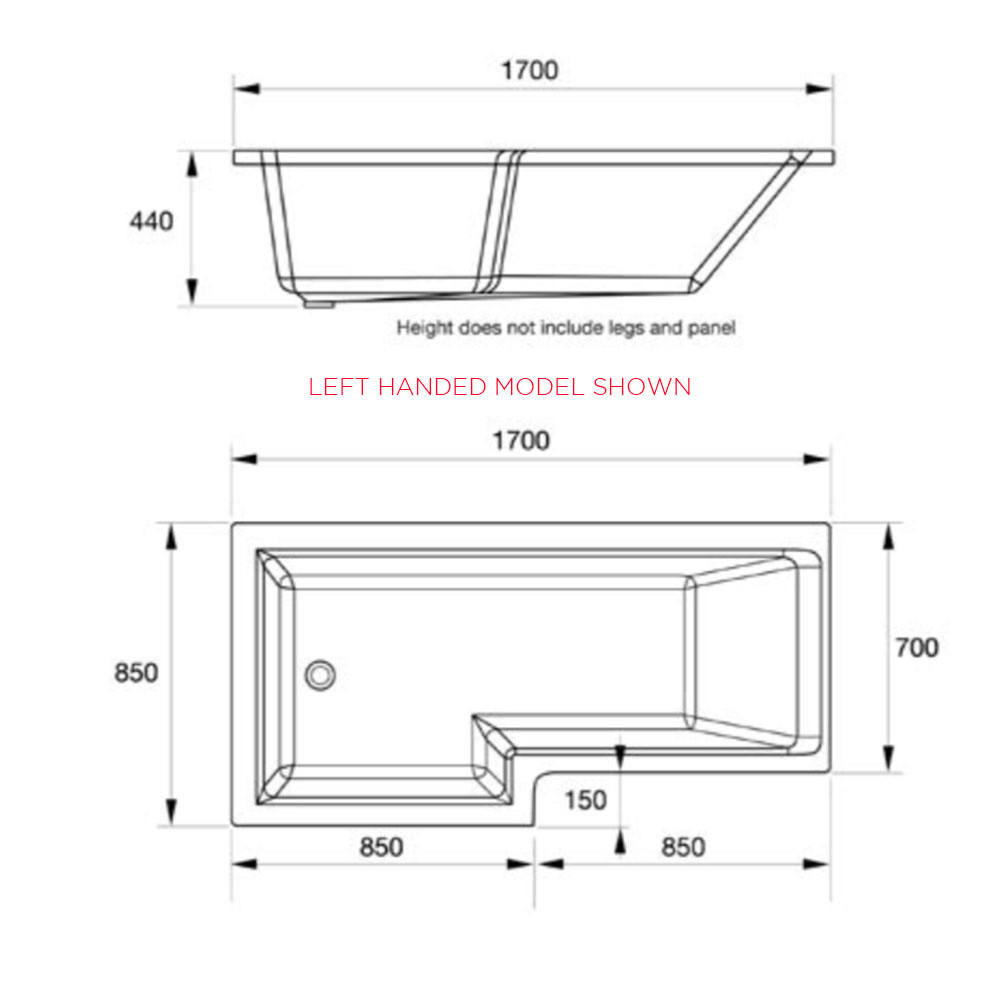 Features & Benefits: DISCON-Essential Kensington 1700mm x 850mm White Right Handed L Shape Shower Bath Pack