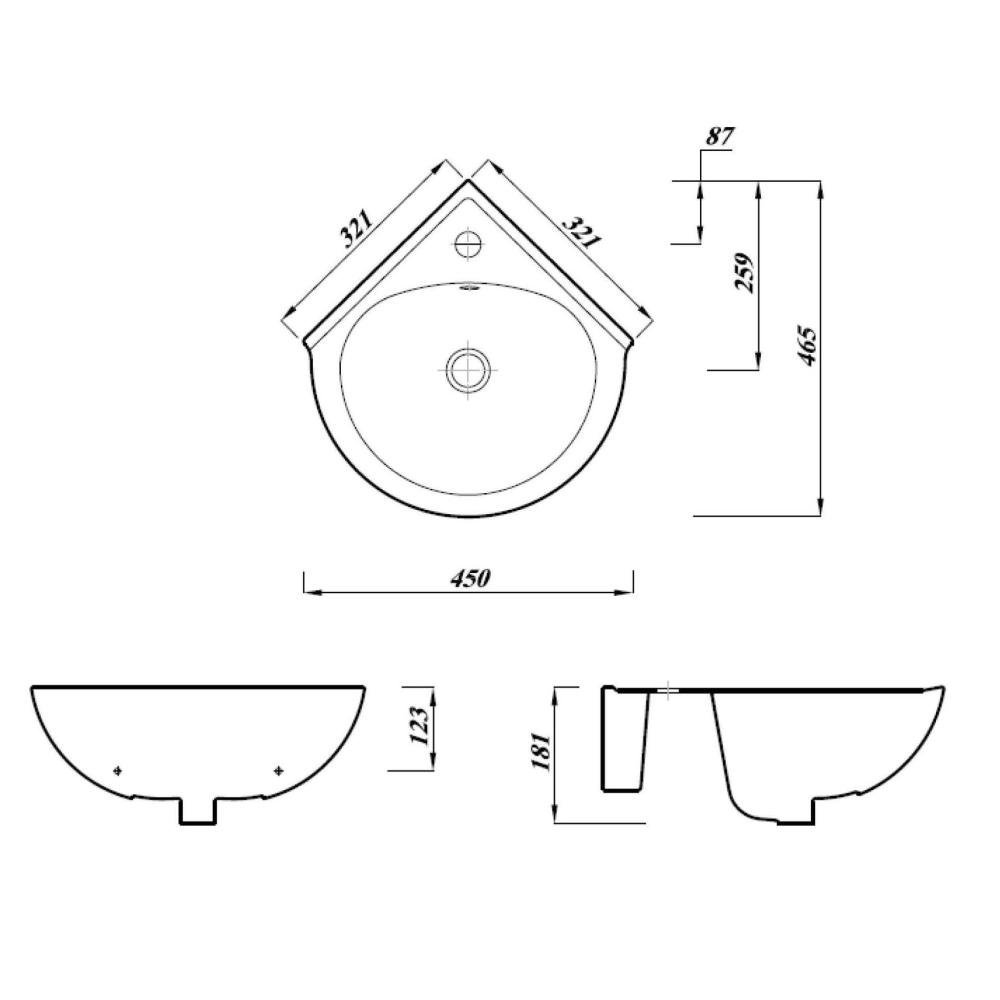 Features & Benefits: DISCON - Essential Laguna 450mm x 465mm White 1 Tap Hole Corner Basin
