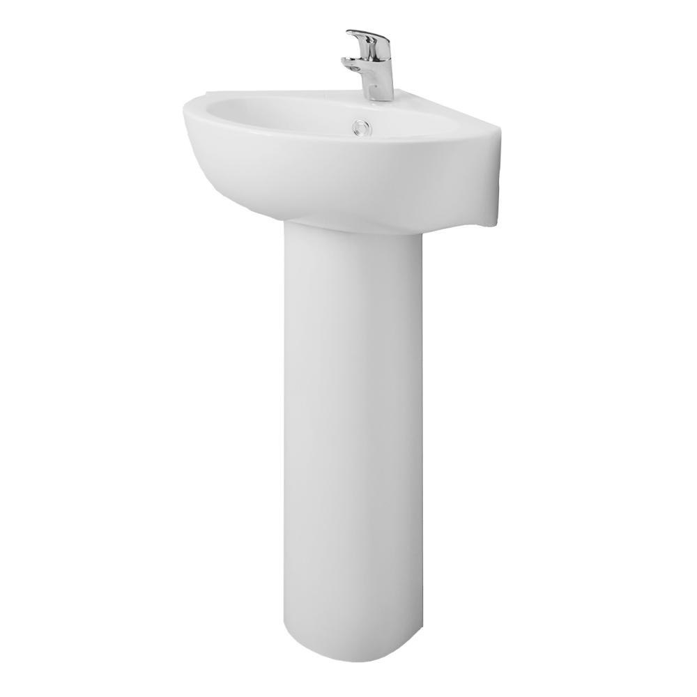 The Essential Laguna 450mm x 465mm White 1 Tap Hole Corner Basin offers a sophisticated space-saving solution, ideal for cloakrooms, compact en-suites, or tight bathroom corners. With its sleek triangular profile, it fits neatly into corners, delivering a modern, clean look without compromising on functionality.