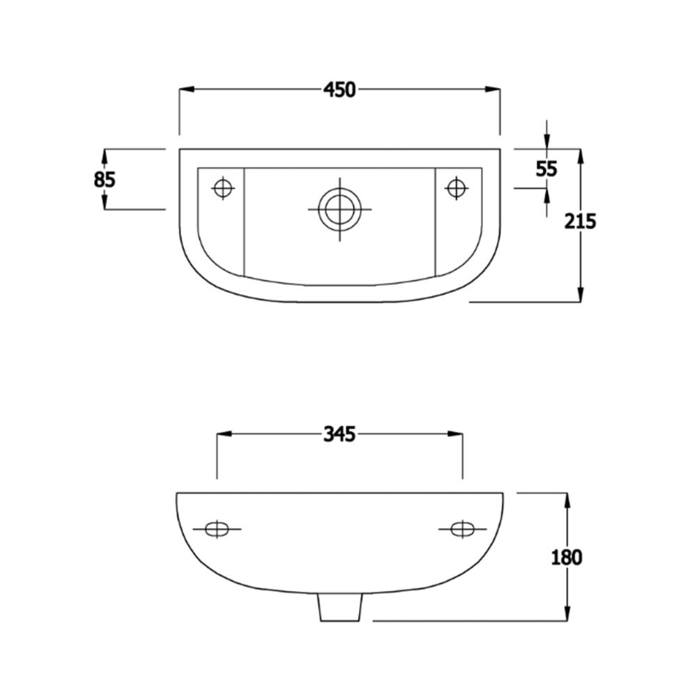 • Single hole basin suitable for a standard basin mixer tap