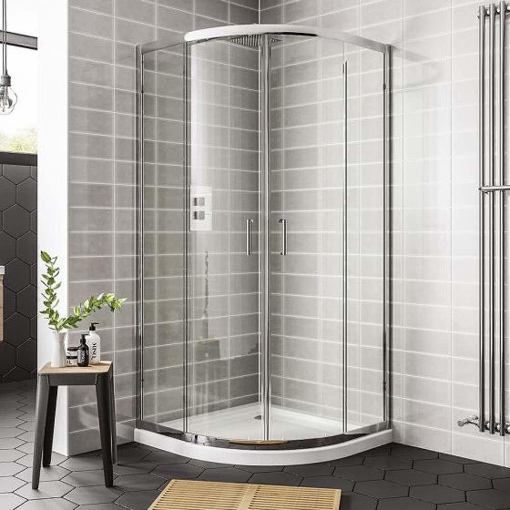 For contemporary bathrooms, this two-door offset quadrant from Essential's Spring range is well-equipped with quick release rollers and sleek chrome frames. This makes for sliding doors that are both easy to open and aesthetically pleasing.