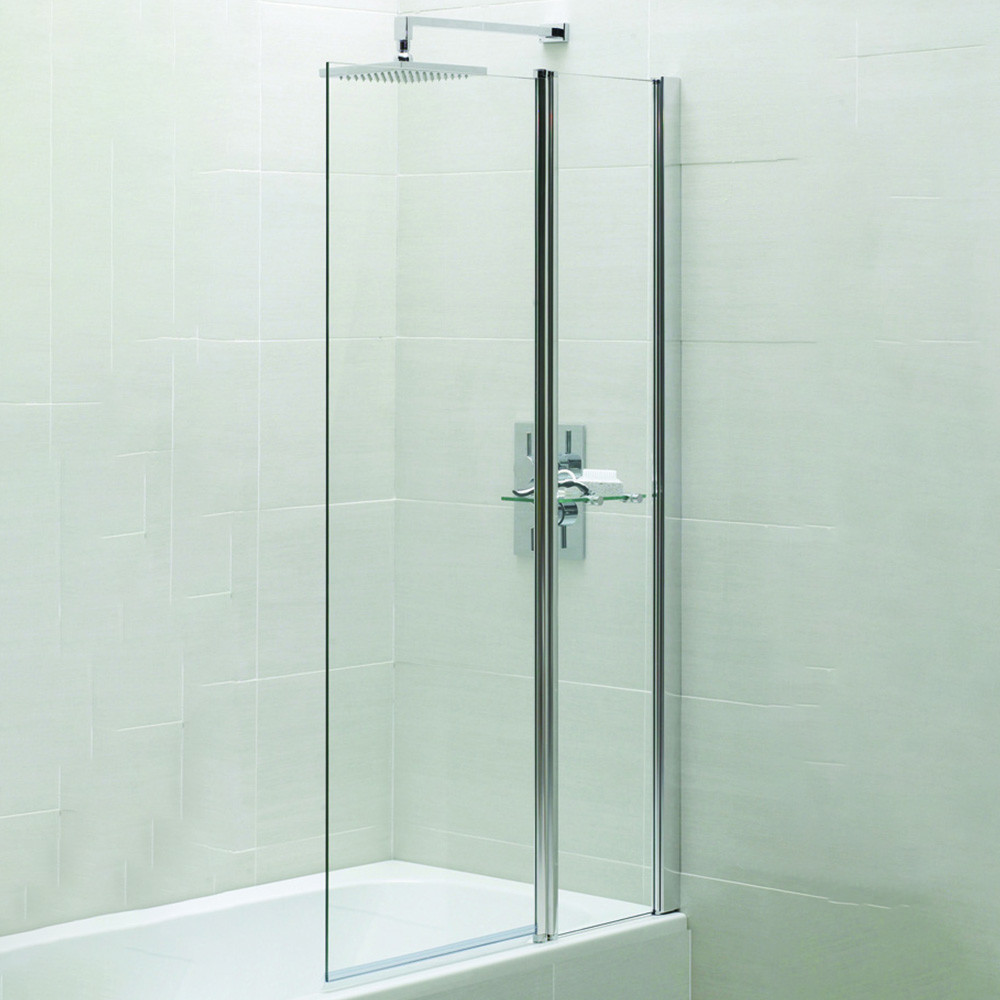 Both appealing and practical, this square bath screen with a fixed panel is ideal for baths with shower units. It forms a clear barrier to prevent water from hitting the floor while showering and guides that water to the drain.