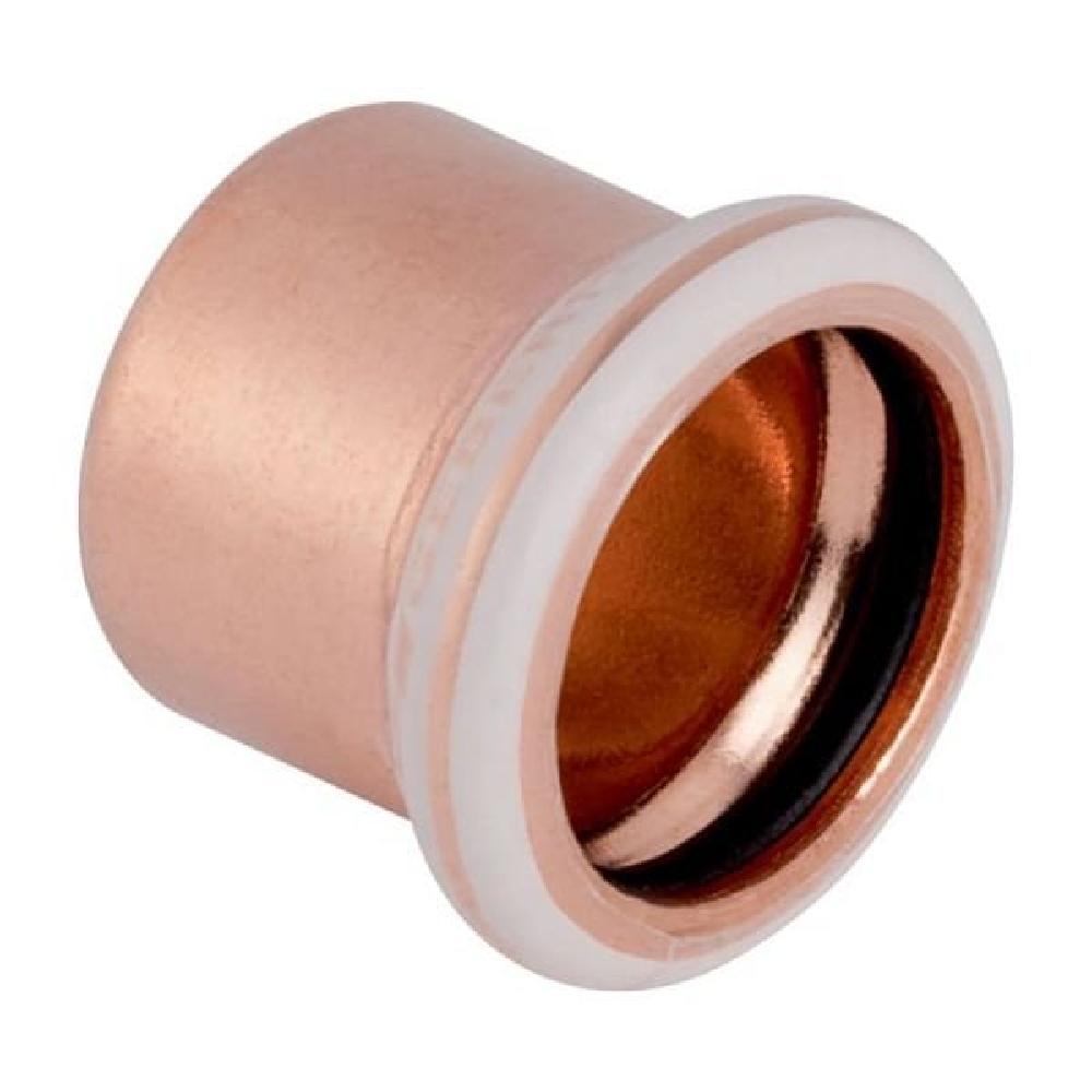 This Copper FKM Blue Stop End is manufactured by Geberit Mapress. This fitting has a Blue Sealing Ring and is designed for use in industrial, oil, solar, and even marine applications.