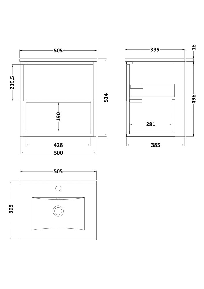 Features & Benefits: DISCON - Hudson Reed Coast Grey Gloss 500mm Wall Hung Vanity Cabinet & Basin 2