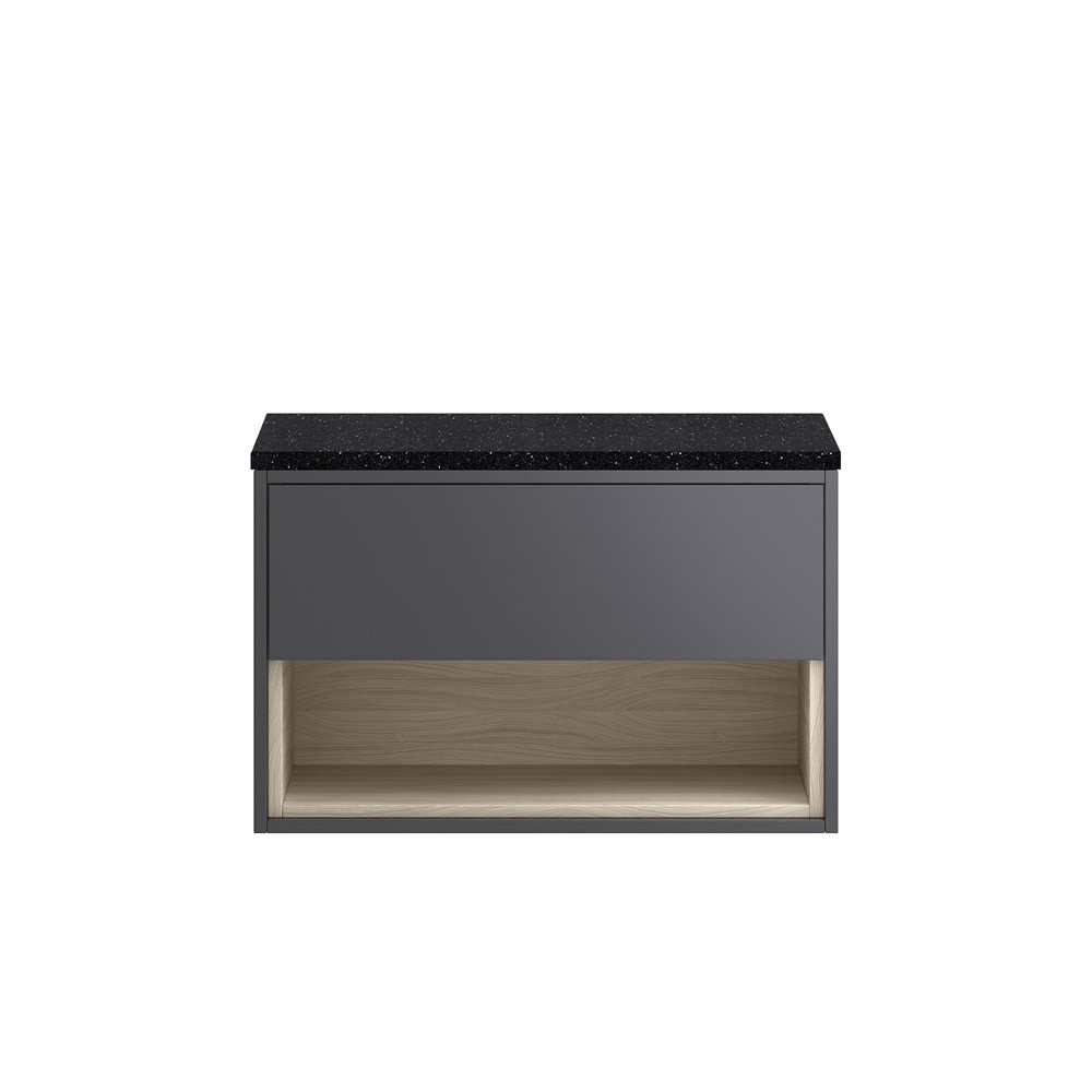 DISCON - Hudson Reed Coast Grey Gloss 800mm Single Drawer Wall Hung Cabinet & Worktop