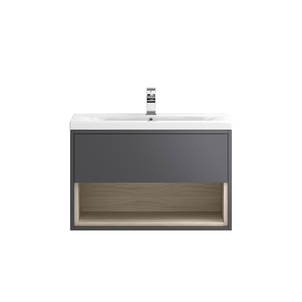 Features & Benefits: DISCON - Hudson Reed Coast Grey Gloss 800mm Wall Hung Vanity Cabinet & Basin 1
