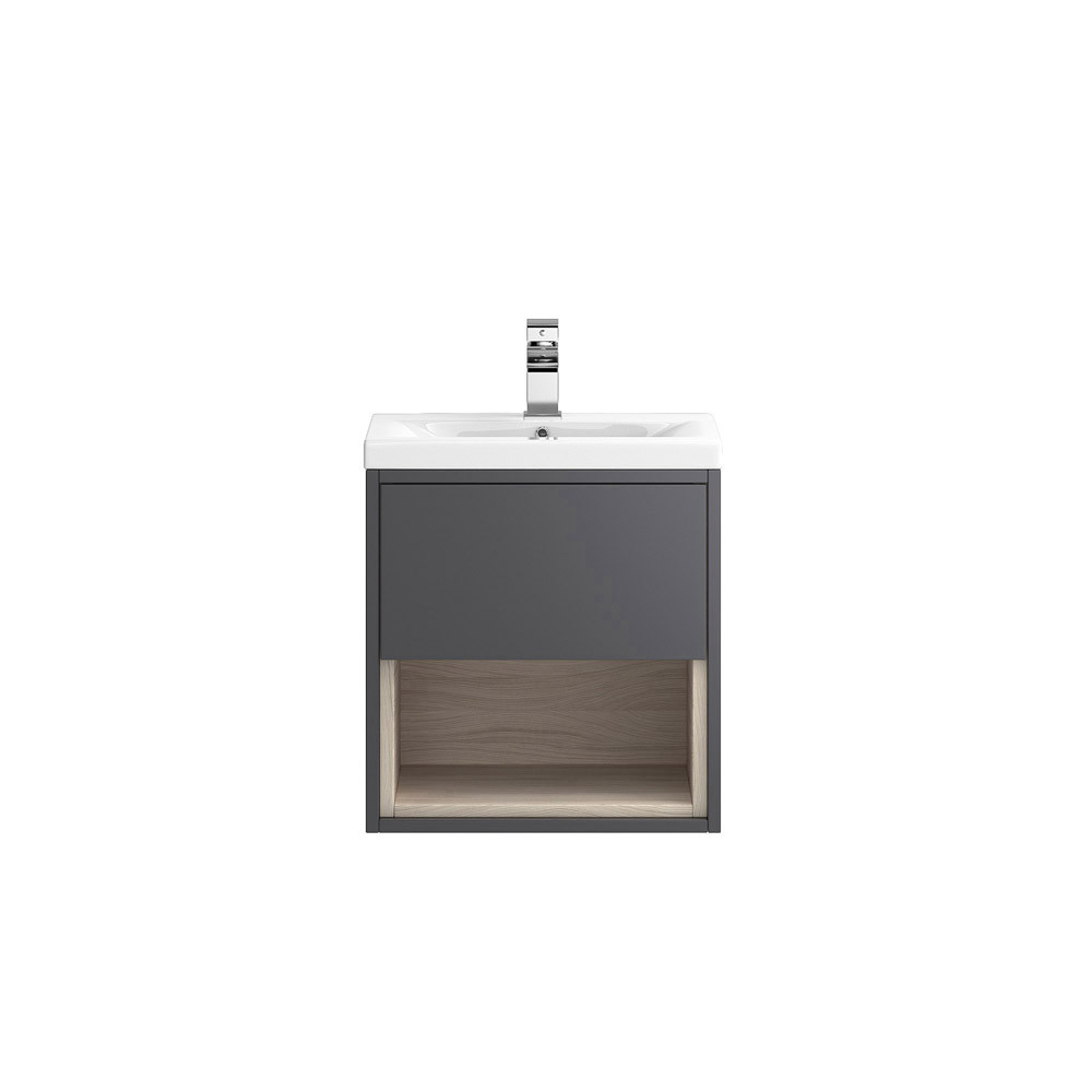 Features & Benefits: DISCON - Hudson Reed Coast Grey Gloss Wall Hung Vanity Cabinet & Basin 1