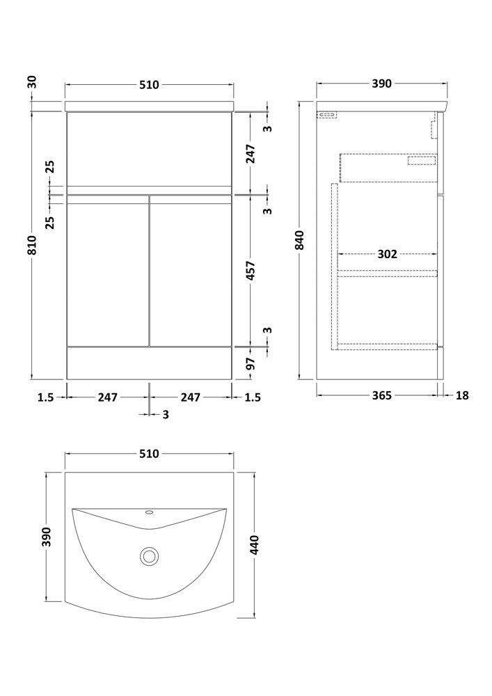 With an abundance of storage space for toiletries and cleaning supplies, this unit features soft-close drawers and doors to reduce the impact and sound from constant closing. Supplied as a rigid construction, installation is simplified. The durable Melamine Faced Chipboard (MFC) and Medium-density Fibreboard (MDF) make for a long-lasting unit and the robust curved ceramic basin is resistant to abrasions and fading.