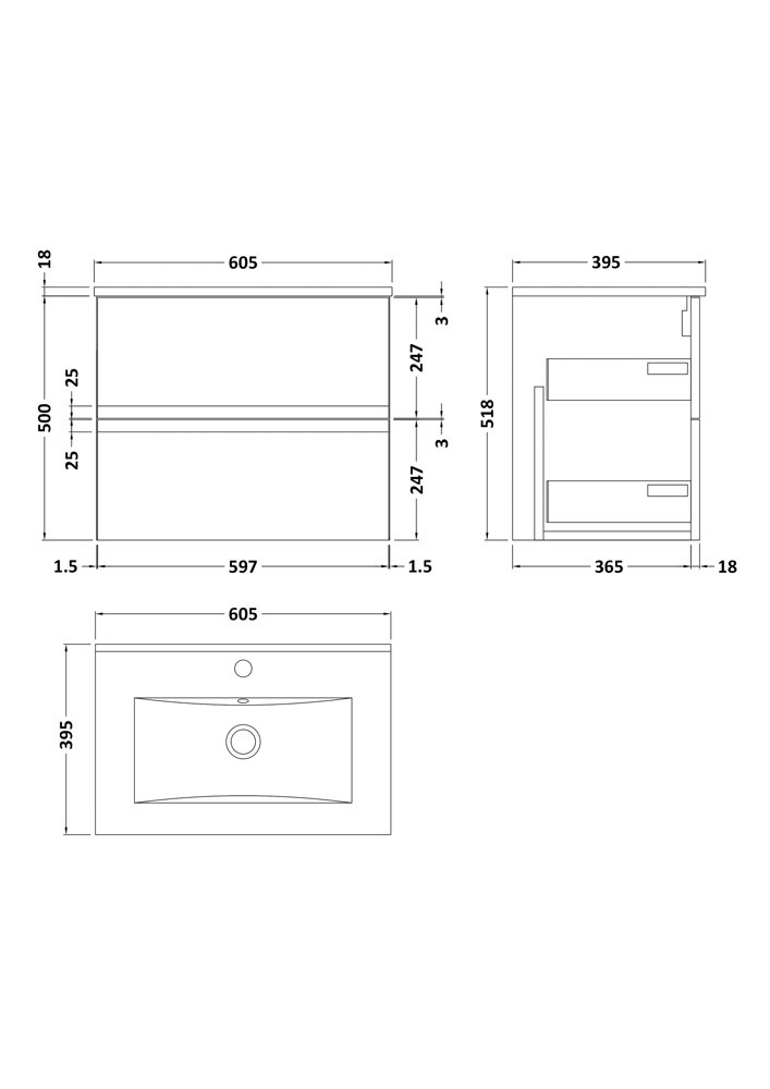 Features & Benefits: Hudson Reed Urban 600mm 2-Drawer Wall Hung Satin Grey Vanity Unit & Basin 2