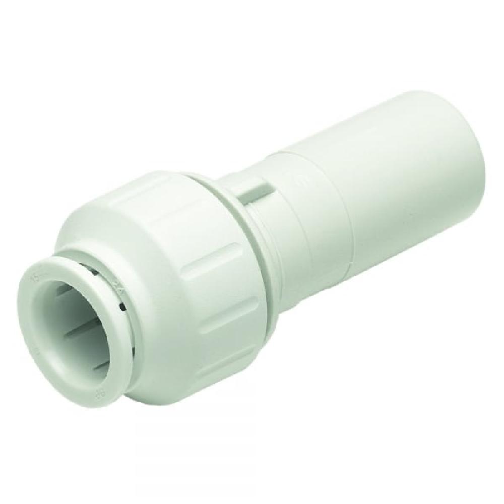 This John Guest Speedfit fitting reducer is perfect for plastic and copper pipe connections and creates a quick way to securely attach two different sized Speedfit fittings to reduce line size. With no adhesives or flames necessary, the push-fit connection makes it incredibly easy to install as well as demount, especially in those small and cramped spaces!