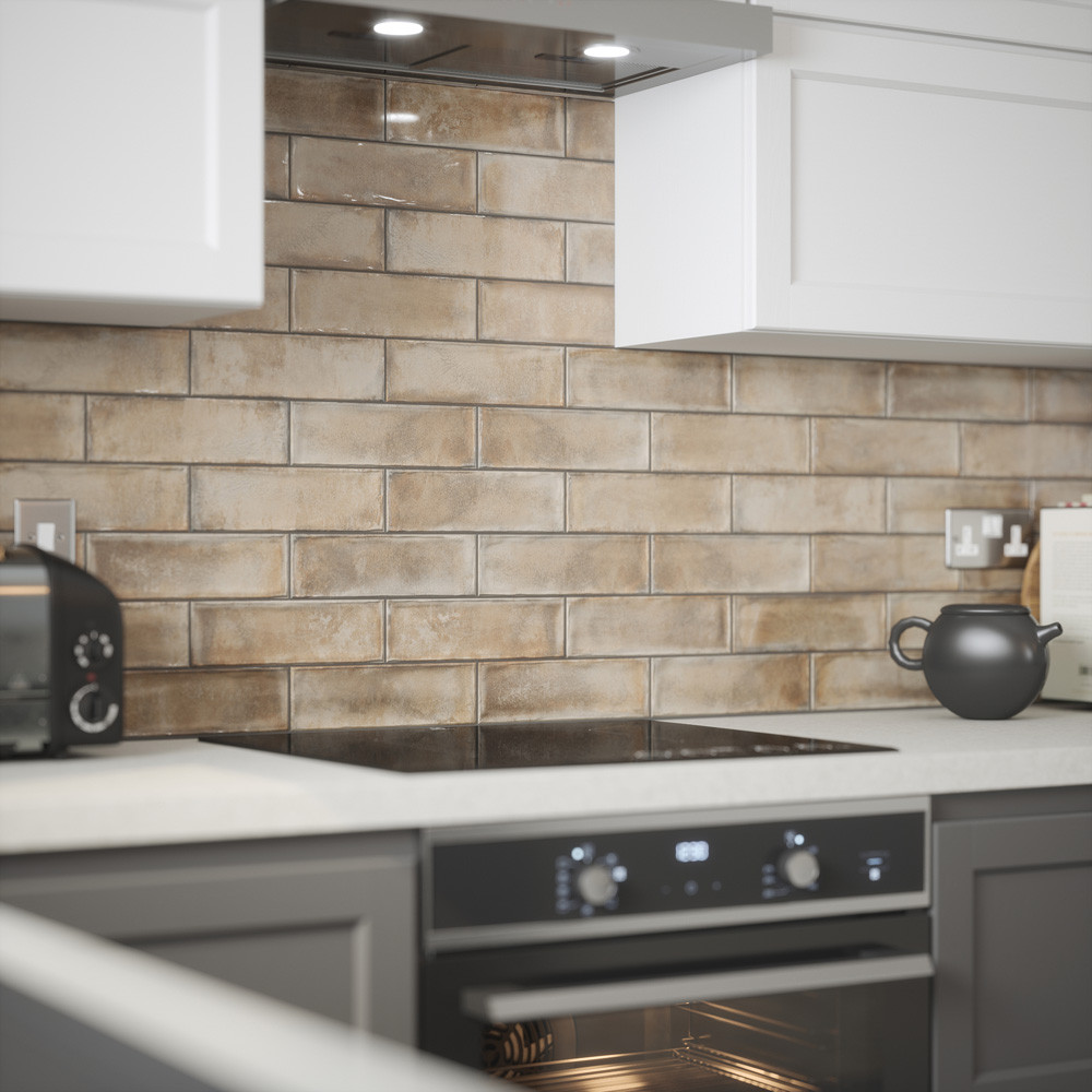 Showcasing a unique and contemporary look with its rustic, almost weathered appearance, this Johnson Tiles Melrose Stone Gloss Glazed Ceramic Wall Tile features a combination of warm brown and buff tones, which will complement a wide array of modern interiors. Suitable for any room, this tile's slim 245mm x 75mm format gives you the freedom to get creative and install your tiles horizontally, vertically or in an eye-catching herringbone pattern.
