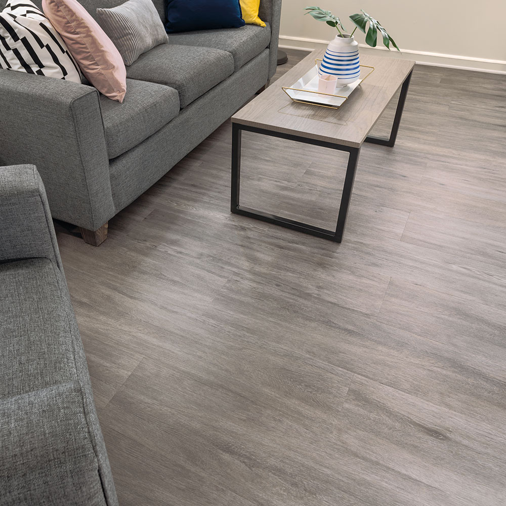 Palio LooseLay Linosa LVT has a linear woodgrain design with a blend of cool greys that make it a perfect addition to rooms with minimalist and contemporary style décor and plenty of natural light. Its combination of smoky dark grey shades and lighter, almost silvery tones will bring a stunning style to any room, from your living room to your bathroom.