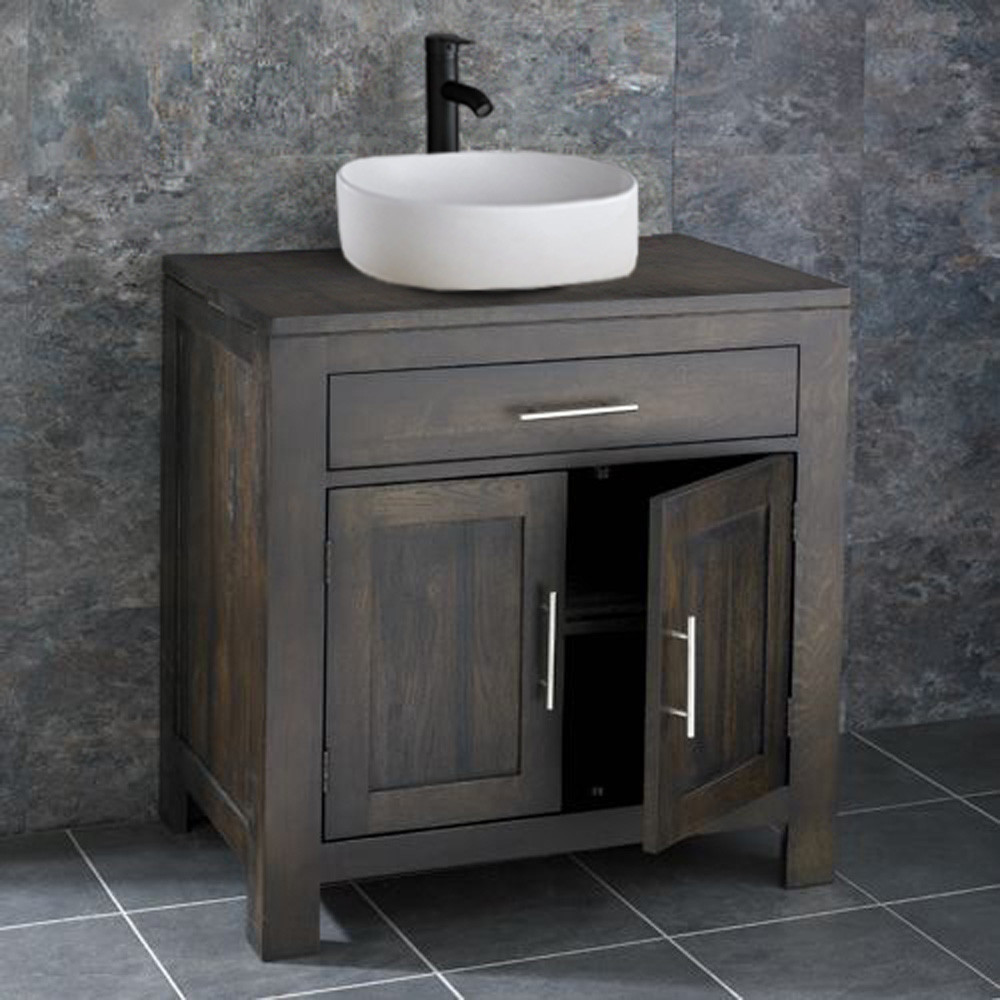DISCON - 750mm Dark Oak Vanity Cabinet & Oblong Ceramic Basin