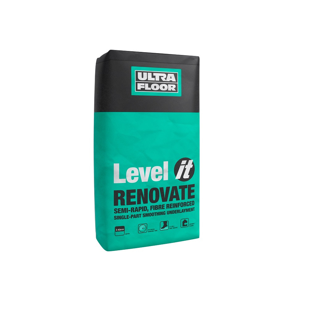 The UltraFloor Level IT Renovate 20KG is a high-performance, fibre-reinforced smoothing compound, ideal for refurbishing and levelling existing floors. With its exceptional flow properties, it provides a smooth, even finish over a variety of strong and stable substrates, including concrete, cementitious tile backer boards, and damp-proof membranes.