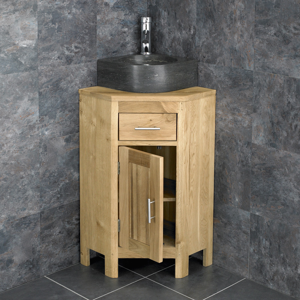 A truly stunning bathroom cabinet and basin set designed to suit bathrooms where space is at a premium, this Medium Corner Oak Vanity Unit & Black Natural Stone Corner Basin brings a natural style that will complement modern bathrooms featuring natural stone tiles or wood-effe... Read More