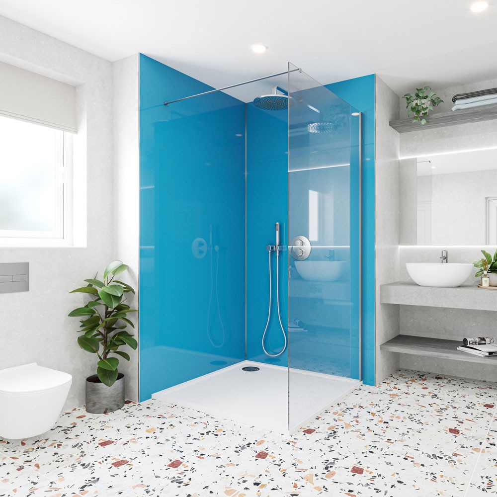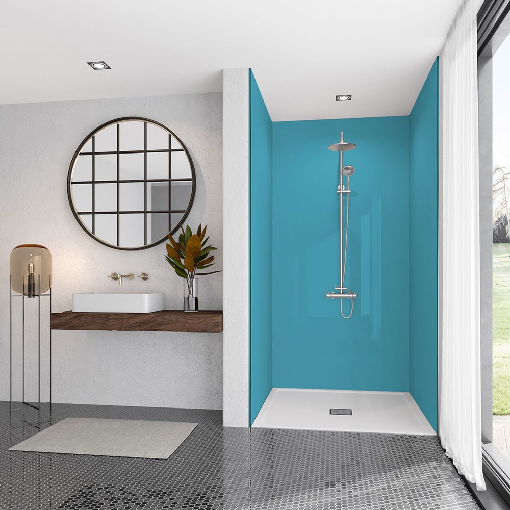 The Mermaid Brilliance Aqua Gloss Acrylic Shower Panel will bring a modern style and colour to your bathroom. This shower panel is ideal if you don't want traditional bathroom tiles and want to add a pop of colour.