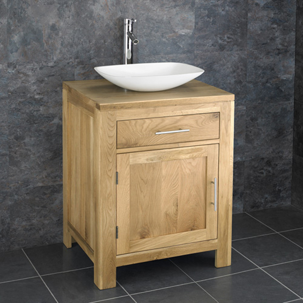 Features & Benefits: DISCON - Natural Oak Vanity Cabinet & Rectangle Curved Stone Resin Basin