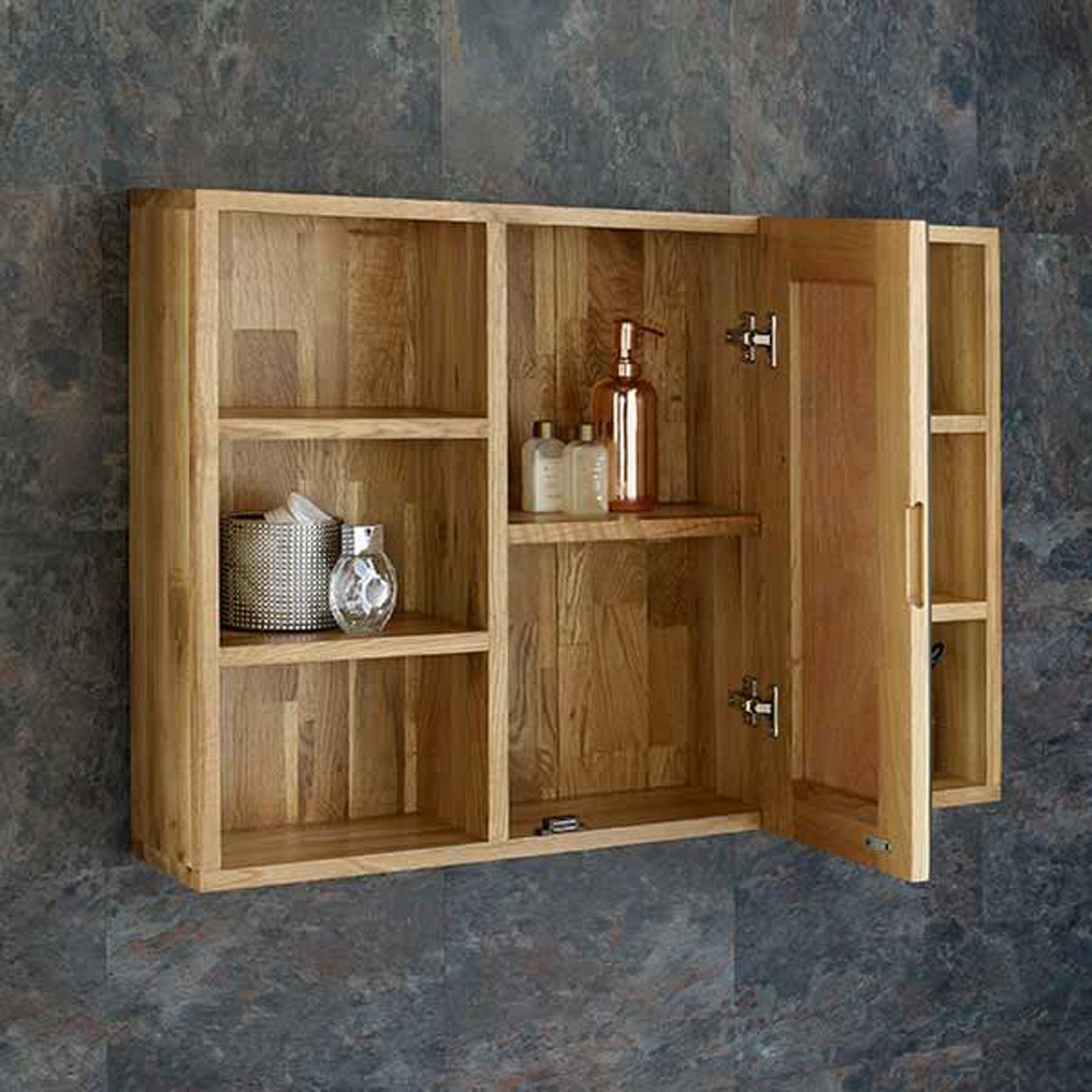 Features & Benefits: DISCON - Natural Solid Oak 800mm x 600mm Mirror Cabinet with Shelf