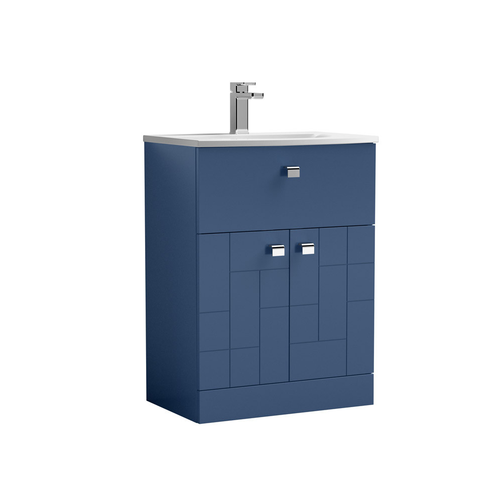 Features & Benefits: DISCON - Nuie Blocks 2-Door/Drawer Free Standing Satin Blue Vanity Unit & Basin 4