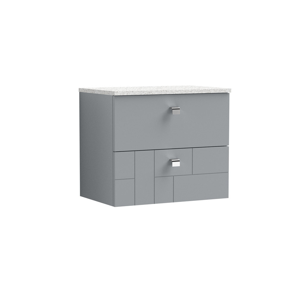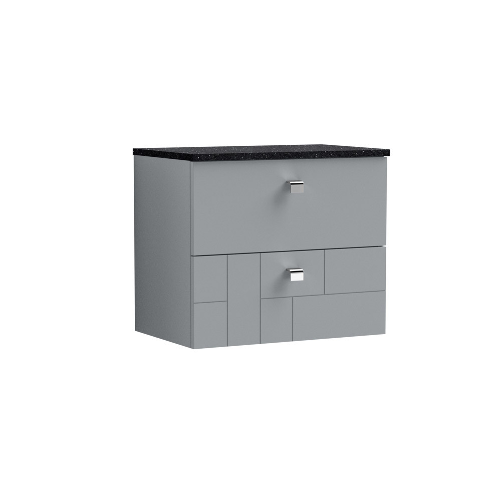 Features & Benefits: DISCON - Nuie Blocks 600mm 2-Drawer Wall Hung Satin Grey Vanity Unit & Worktop