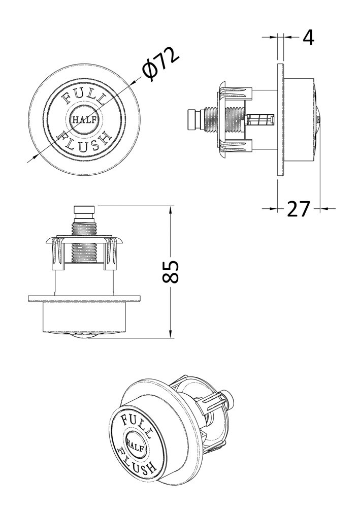 The rounded dual flush push button with a black finish has been designed to help give you back more control over the amount of water used during a flush. With the use of ABS and 30% recycled plastic in its manufacturing, you can rely on your button to last longer thanks to its durable exterior. Sizes include a width of 72mm, a height of 72mm and a depth of 85mm for a defined fitting.
