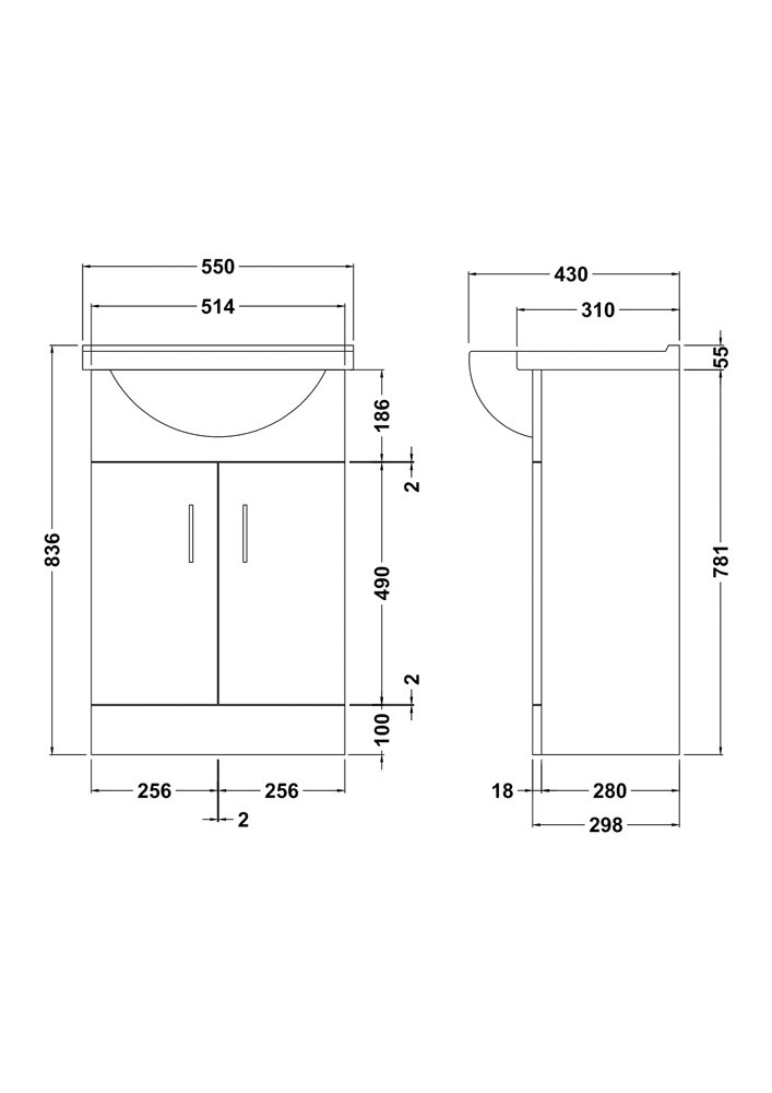 Features & Benefits: Nuie Mayford 550mm Free Standing High Gloss White Basin Unit