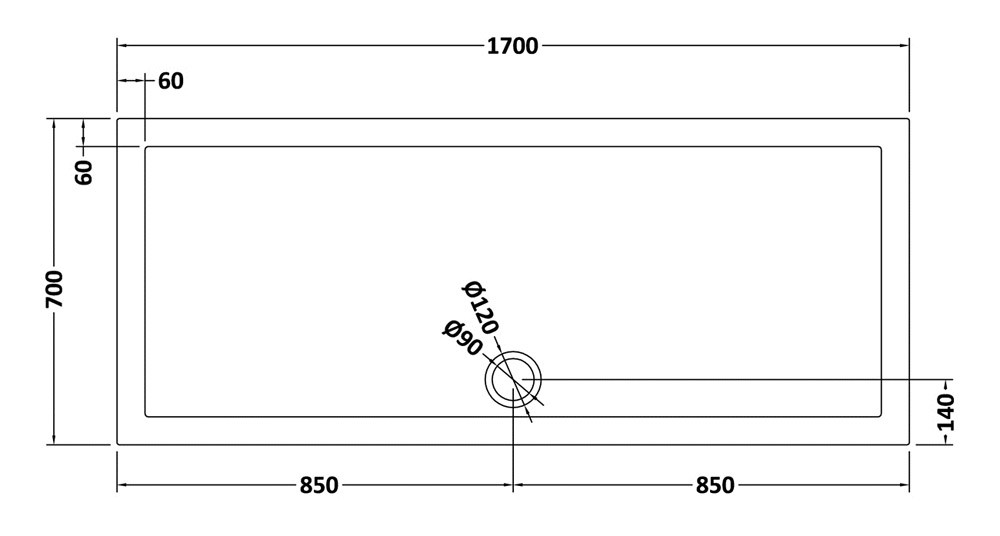 Nuie Pearlstone 1700mm x 700mm Slate Grey Rectangular Shower Tray