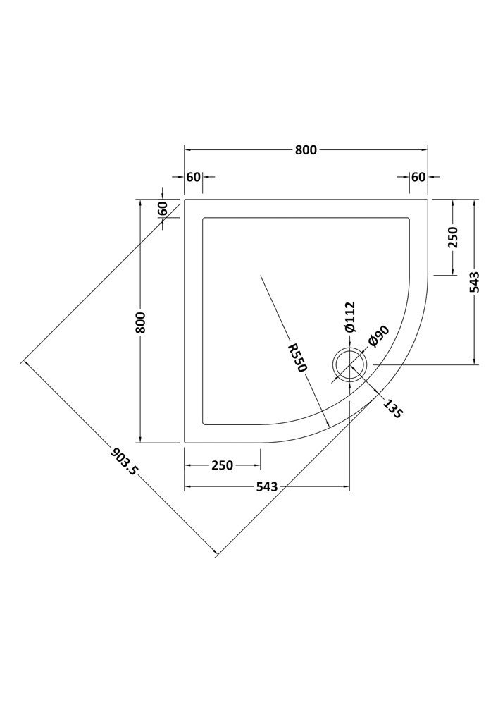 Nuie's Quadrant Shower Tray features a sleek gloss white finish and a slimline profile, perfectly complementing bathroom suites with soft edges and curved lines. Its space-saving quadrant design allows you to create a stylish shower unit even in compact bathrooms. The central 90mm diameter shower waste ensures ample standing room, and various size options cater to your specific needs.