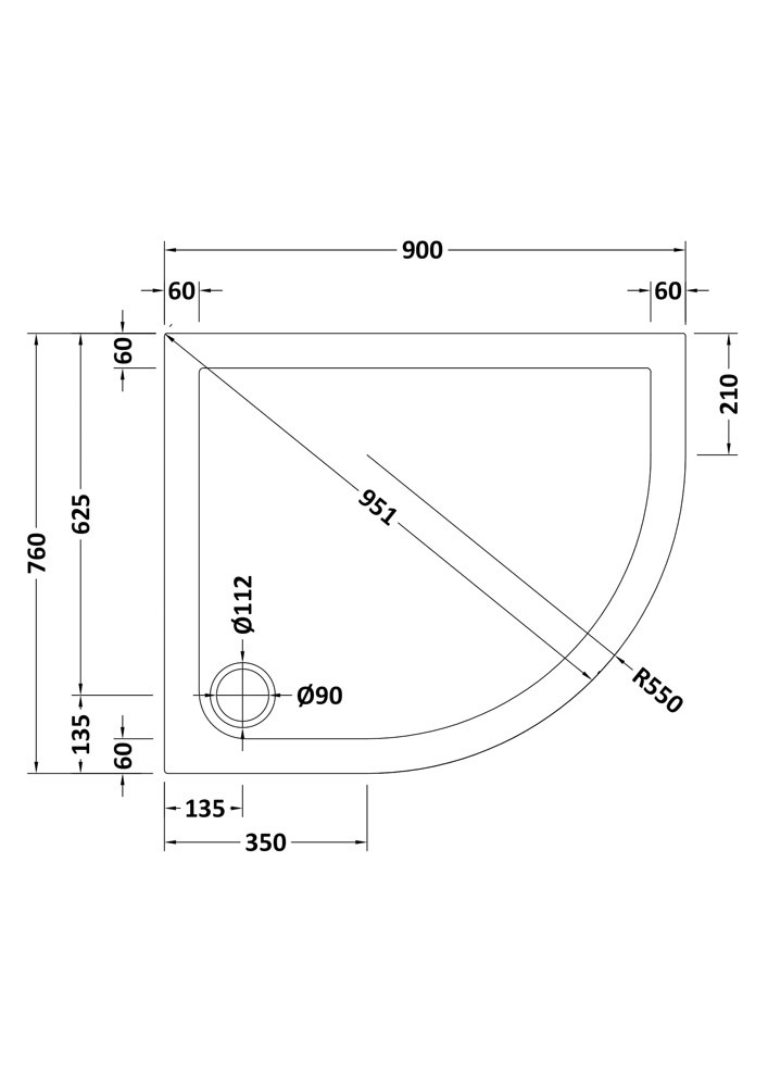 Features & Benefits: Nuie Pearlstone 900mm x 760mm White Offset Quadrant Right Hand Shower Tray