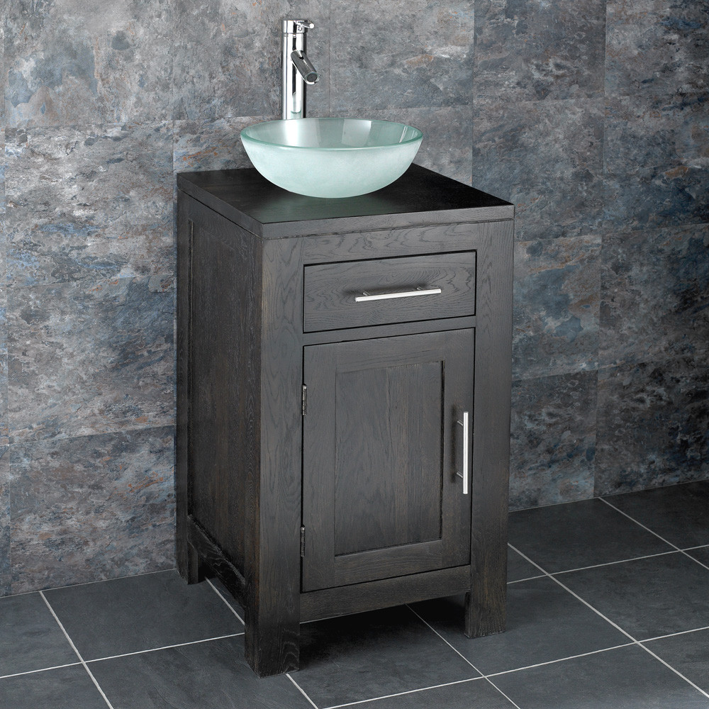 Features & Benefits: DISCON-Oak Cloakroom Wenge Vanity Unit & Frosted Round Glass Basin