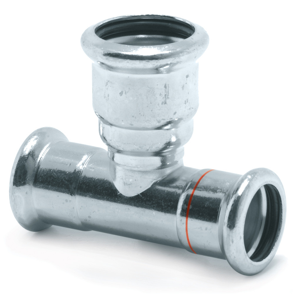 This Xpress Carbon SC28 red tee is manufactured by Pegler Yorkshire and is available in a range of sizes from 15mm x 15mm x 22mm up to 22mm x 22mm x 28mm.