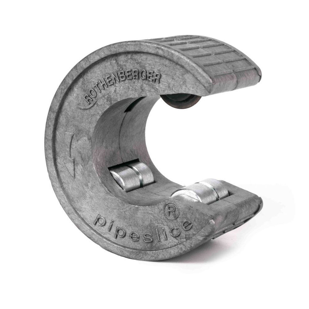 The ROTHENBERGER PIPESLICE is a single-action copper tube cutter, for 28mm copper pipe. It is easy to use with one hand thanks to the reliable, non-slip surface and is ideal for use in tight spaces. It allows for a clean, square cut in one or two turns and has replacement blades available for purchase.