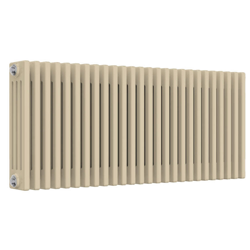 Reina's 500mm x 1010mm Colona 4 Column Horizontal Radiator is specifically designed for central heating systems and helps provide a comfortable temperature throughout the year. With its Light Ivory finish, this radiator provides a striking alternative to classic white radiators. Featuring a delicate, warm off-white colour with a subtle yellow undertone, it harmonises with various style trends, including traditional, Scandinavian, and contemporary, adding a touch of timeless beauty to any space.