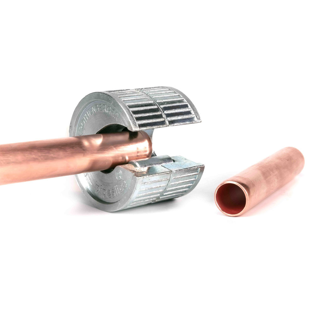 The ROTHENBERGER PIPESLICE is a single-action copper tube cutter. It is easy to use with one hand thanks to the reliable, non-slip surface and is ideal for use in tight spaces. It allows for a clean, square cut in one or two turns and has replacement blades available for purchase.